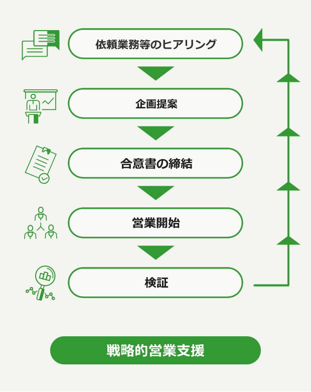 企業様にかわり弊社グループの営業スタッフが、拡張営業活動を行います。
